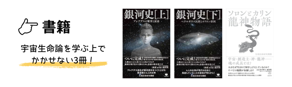 銀河史(上・下)では、我々が所属している天の川銀河2800万年の歴史について始まり、実際に起こった物語を通して人間生命誕生の流れや、過去の宇宙人たちの歴史を知ることができます。