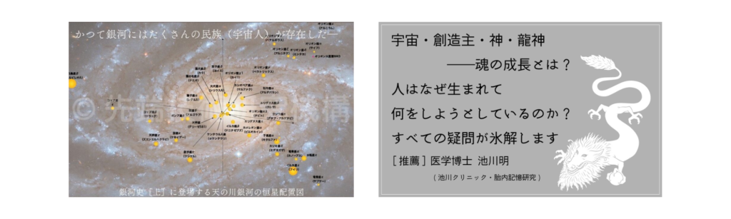 ソロンとカリン龍神物語では、龍神島民族(日本)がなぜ重要なのか、創造主や神々とどのように関わってきて、何を託されているのかを知る事ができます。また、本書では外宇宙についての記述もあり、銀河史と合わせて必読書となります。