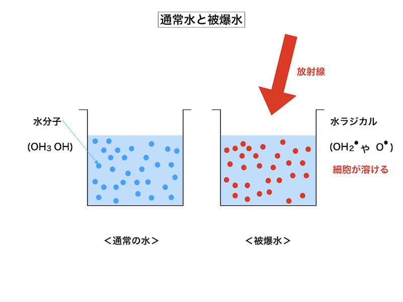 水に放射線を照射すると、「お化けラジカル」が形成され、活性酸素の数十万倍にも及ぶ激しい反応力を示す物質が誕生して来る事実を人類はかなり前から気付いていました。その物質とは「ハイドロキシ・ラジカル」であり、基本的には水分子を構成する単なる水酸基(OH基)の一種なのですが、動物の毛(細胞)まで溶かしてしまう恐ろしい溶解力を持っている事から、医学界ではこの物質を「抗癌剤」として用いて今日まで来ました。早い話が被爆水の活用なのですが、原子力発電所から海に放出される冷却水(被爆水)の弊害を考えると、あるいは医療検査に使用されるX線照射機(CTやレントゲンの事)の弊害を考えると、被爆水分子の医学活用は水面下で内密に行われて来た経緯があります。世の人々の反発を恐れたからです。本日は、抗癌剤の実態とは「発癌剤」ではないかという話ではなく、純粋な学問の話であって、「ラジカルとは何ぞや」というその物理的及び化学的な背景を説明したいと思います。