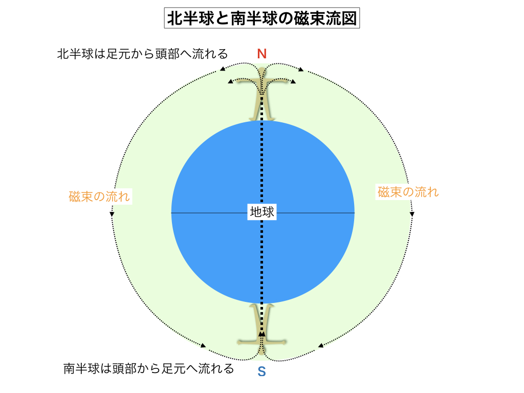 渦磁場の中心磁束流による生体変化は、惑星の末期状態である今は大きく作用しませんが、数億年前の地球では生物進化に目に見える大きな作用をもたらしました。同じ熊でも北方系の熊は体長があり、人間も植物も背丈が基本的に大きくなり、南半球では逆に背丈が縮小して下半身がデップリ状態に変化して行きます。北半球では頭部や腕が発達(陽化)して能力が高くなるのに対して、南半球では反対に劣化して、長く住めば住む程知能が後退して行きます。南半球にはまともな文明国は存在しないのですが、その理屈は別に地球で無くてもどこの星でも当たり前の常識、全く知らされていないのは地球人だけかも知れません。しかし、地球でも神々政権下の長い期間に渡って南半球は立ち入り禁止の禁断の場所であり、また人間世界になっても暫くの期間は流刑地とされて来ました。人間が駄目になってしまう事を昔の人間の方が良く知っていた様です。南半球の良い点はそこが生命の発生場所であって、生物としての零基点に一時的にリセット出来るというメリット、もしかしたら人間生活の原点もそこに存在するのかも知れません。しかし、南半球は旅行で立ち寄る場所であって、落伍者で無い限り陰化した土地柄には住むべきではありません。