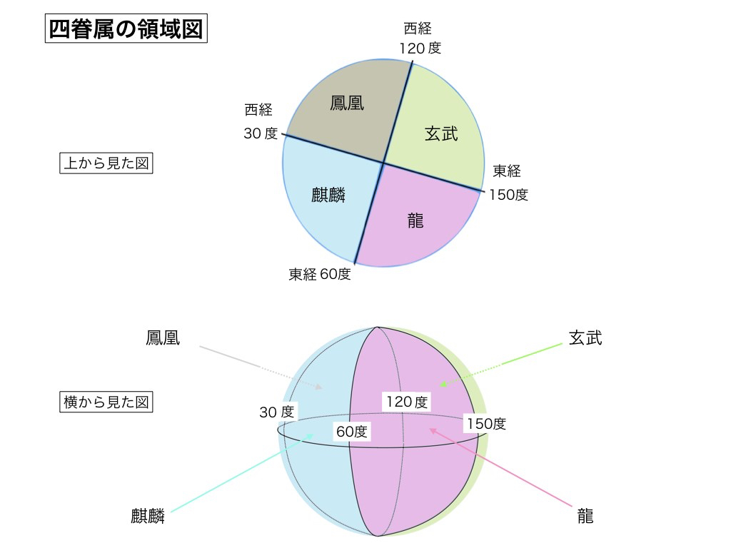 経度差による四眷属の性質は既に説明していますが、皆様の位相が眷属領域の何処にあるのか、更にその眷属領域のどのランクに位置している生命なのか、それを見定める事が出来ます。生年月日で分かるのは皆様の位相が12層の大磁界の中の何処に所属しているのかですが、眷属ランクとは、一つの大磁界が12層の小磁界に分かれており、その12の小磁界の中の何処に位相が位置しているのか、それを表すものです。四眷属を龍神名称で表している事から、ここでは小磁界の高低を色別で示しており、第12小磁界である「白」を筆頭に、第11小磁界を「白銀」、第10小磁界を「銀」、第9小磁界を「金」、第8小磁界を「紫」、第7小磁界を「群青(紺)」、第6小磁界を「青」、第5小磁界を「緑」、第4小磁界を「黄」、第3小磁界を「橙(オレンジ)」、第2小磁界を「赤」、第1小磁界を「黒(パール)」と表現しており、色は磁場の十二色であり、色自体にも高低のランクがあります。このランクを四眷属と合わせて白龍(白鳳)とか、白銀龍(白銀鳳)とか銀龍(銀鳳)と称しており、その生命がどの眷属ランクなのか、優秀なのか不優秀なのか、それが一発で見て取れるという恐ろしい査定法です。