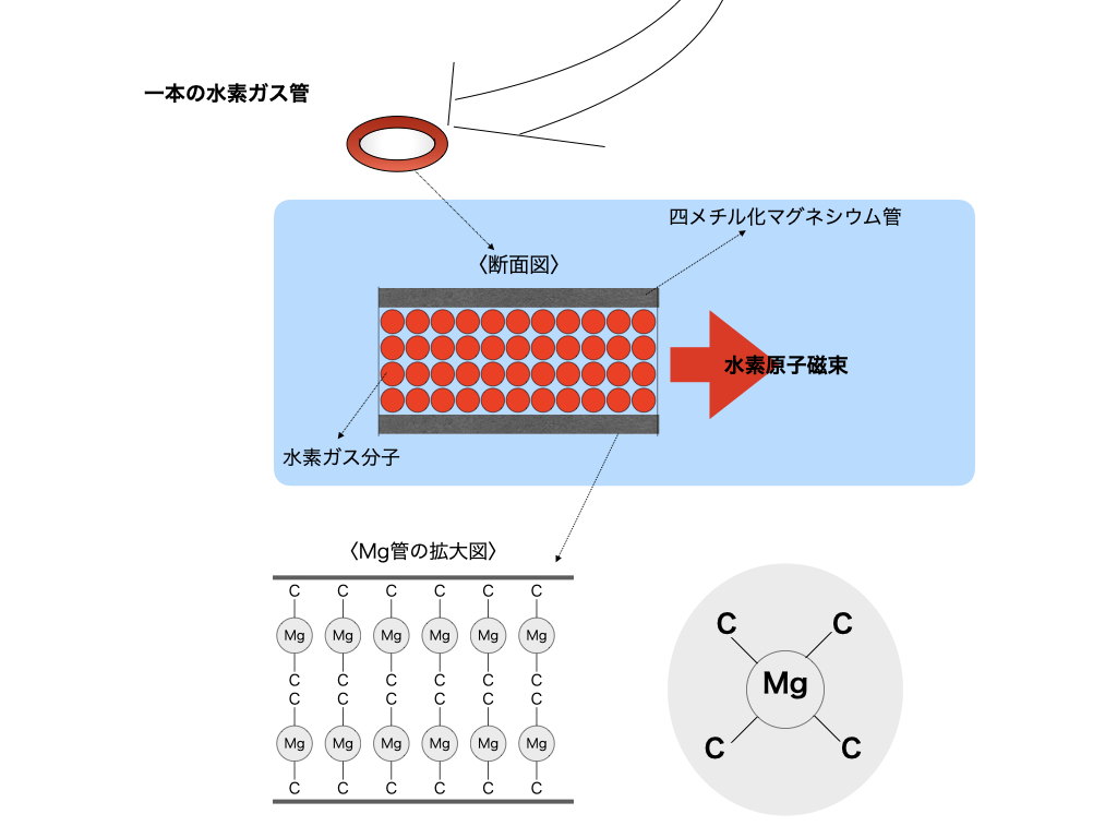 安定した電磁場を形成する為には、交流の如き途切れ途切れのパルス電流では用を足さない為に、滑らかな直流系の起電流や、あるいは電子電流の回転が必要であり、特に素粒子を扱う場合は電子電流や核子電流を、また原子や分子を扱う場合は原子電流や分子電流の直流が用いられているのが一般的です。空中炭酸ガス固定化装置の電磁場形成には原子電流が使用されており、具体的には生物電気である「水素原子電流」が使用されており、それは空中窒素ガス固定化装置にも、あるいは水分子の六員環固定化装置にも使用されていました。主に生物の体内で使用されている「水素原子電流(コリン電流)」を一体どうやって工業的に生産すれば良いのでしょうか。アルデバラン人が、なぜその電流(水素原子電流)に気が付いたのかと言えば、当時の多くの星々では危険な原子力発電を止めて、安全な「水発電機」を利用していたからです。水発電機とは環状の土管の中の水分子を固形化させて、水の六員環分子磁束を回転させて万年電磁場を作り出したものですが、この土管の電磁場から電気を取り出す方法は主に二つ、一つはコイルを用いて交流電流を取り出す方法と、もう一つは土管の電磁場内部で直流の「水素原子電流」を取り出すと言った二種類の手法です。