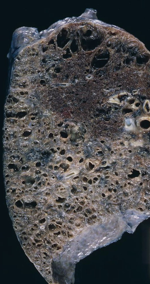 肺胞の薄い壁の中(間質)に毛細血管が走っており、ここでガス交換が行われている事は承知の通りです。この薄い肺胞壁そのものに炎症や損傷が発生し、段々と壁が厚く硬くなって(線維化して)、ガス交換がうまく出来なくなるのが間質性肺炎という病気です。また、肺胞壁ばかりか、小葉間隔壁や、肺全体を包む胸膜壁にも線維化が起こって重篤な肺炎症状を呈してきます。間質性肺炎の原因は様々ありますが、その中でも全く原因が分かっていない間質性肺炎の事を「特発性間質性肺炎」と呼んでおり、国の特定疾患に分類されています。特発性間質性肺炎もパターンが異なる幾つかの種類があって、ここでは「急性・亜急性間質性肺炎」の中から全く原因が不明な「特発性器質化肺炎(COP)」と「急性間質性肺炎(AIP)」に関する知見を述べようと思います。「特発性器質化肺炎」に関しては宇宙医療団にも数例の症例があって、その根本原因は土壌バクテリアの一種であるシュードモナス属の菌類で、その癌化種が放出した発信器によって引き起こされています。近年は農薬を使わない家庭菜園が人気なのですが、事故原発が吐き出す放射性のRADガスが畑に降り積もって、無害な筈の土壌細菌が癌化するケースが増えている様です。