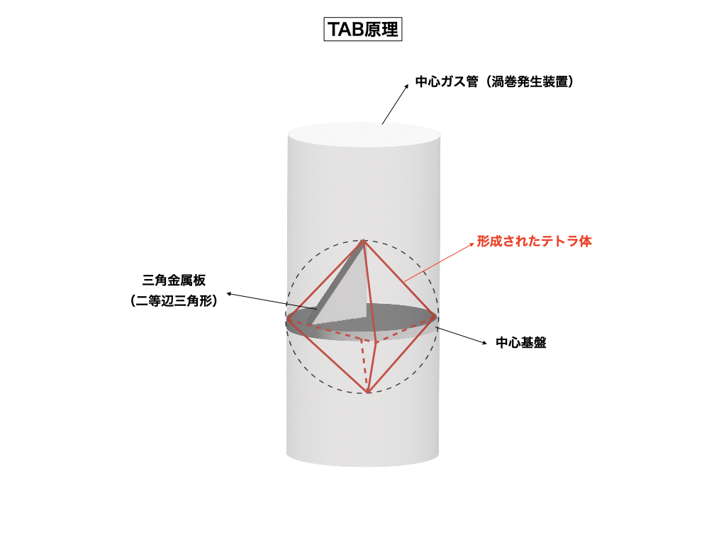 「テトラ体(力場)」から如何様にして力線を取り出し、それを推進力に用いるのか、これは大宇宙人類に宛てがわれた共通の「謎解きゲーム」みたいな課題であり、我々の銀河系では今から約51万年前の銀河レムリア期に「琴座(リラ)のベガ星人」がその手法を開発し、最初に「銀河広域指定民族」の名誉を賜りました。当時のベガ星人は現在の地球人と遜色が無く、宇宙船のエンジンに小型の原子力を使用したりしていましたが、乗組員が次々と死亡してしまう事から、自分達は神界から見放されたと考えていた様です。しかし、テトラ体を応用した無燃料推進器(TABエンジン)の開発に漕ぎ着けると、突然、神界の認可が降りて、聖地民族の言語誘導という創造主の特命任務を請け負う事になりました。「TAB(タブ)エンジン」とは英語に翻訳すれば、トライアングル・バイパス法(三角法)の事であり、既成の回転テトラ体の中に「三角形(二等辺三角形)」の金属板を挿入する事によって推進力を得るという手法です。この三角原理は創造主が最初の人類に与える宇宙船の推進原理(創造主の第一技術伝授)です(アダムスキー型円盤)。