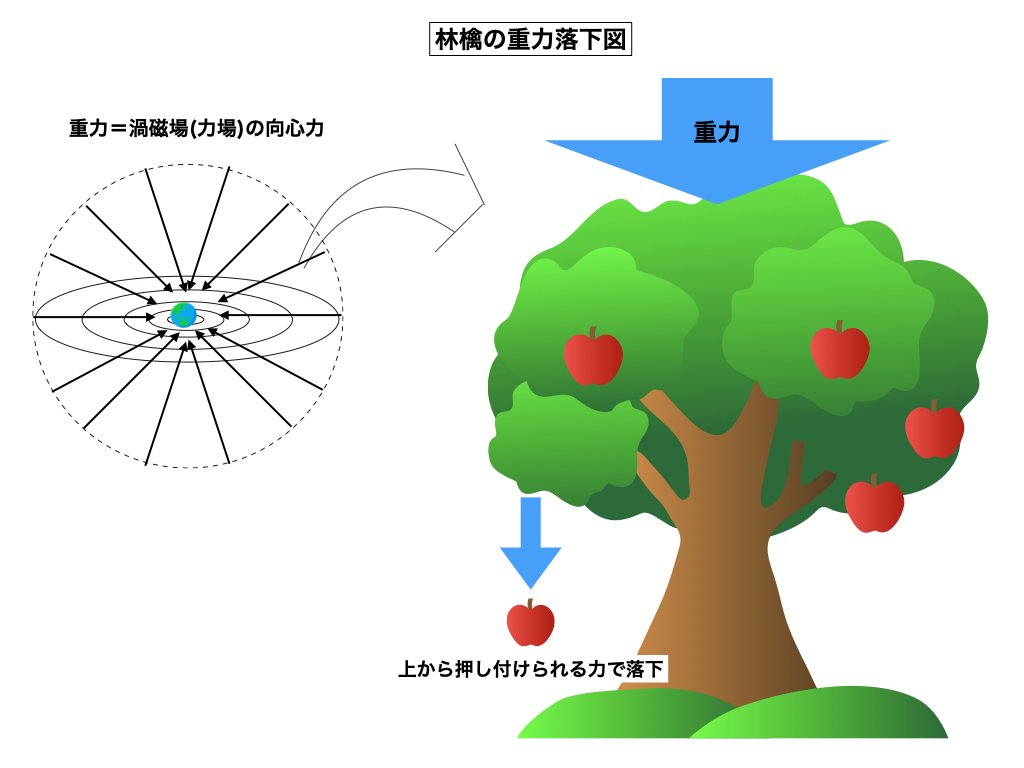 そもそも物理学者(数学者)の大きな勘違いとは、ニュートン力学の遺伝病である所の「重力」を「物体引力」であると解釈してしまった事でしょうか。重力とは「場の力」であって、物体同士が引き合う力でも何でもなく、渦磁場(力場)がその中心点に対して力を入力する作用の事であり、本来の意味は物体を圧縮する力の事です。「重力」とは文字通り物を積み重ねる「中心点圧力」なのです。つまり、林檎は「地球引力」に引っ張られて落下したのではなく、地球磁場圏(重力圏)から中心点に対して向心してくる重力によって落とされたのであって、重力とは頭の上から地上へ降ってくる「場の力」の事なのです。およそ渦磁場という物は、そのサイズとは無関係にそれぞれ磁場重力(系内重力)を備えており、電子系の渦巻も、また陽子系の渦巻も、渦巻の中心点には気の粒を集めて圧縮しています。陽子のコアも電子のコアも、両方とも気の粒の凝集体に過ぎず、重力場である中心点から外に弾き飛ばされてしまえば、それらは爆発的に分解して元の気の粒に戻ってしまう物なのです。バリオンもレプトンも渦巻の中に居るから形を保てているだけの話でしょうか。