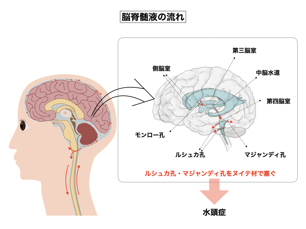 ※ 水頭症とは何らかの原因によって脳脊髄液が頭蓋内に蓄積し、脳を内部から圧迫する病状の事であるが、特発性正常圧水頭症の様に原因は分からないが脳脊髄液の循環不全が原因でなる場合と、続発性正常圧水頭症の様に頭部外傷やクモ膜化出血や髄膜炎などの明瞭な原因で起こる場合とがある。この病気の好発年齢は60歳以降であり、男女差の違いは無く、認知症と認められた患者の約5%が特発性の水頭症であると言う統計がある。本来循環している筈の脳脊髄液がなぜ突然止まってしまうのか、原因は定かでは無いが、特発性の水頭症の多くが魔界神によるアストラル武器挿入が原因である事実は、宇宙医療団は十数年前から突き止めており、それなりの対処法を施して来た。脳脊髄液は主に脳室の脈絡叢(みゃくらくそう)で生産されており、脳室には「側脳室」と「第三脳室」と「第四脳室」の三箇所があるが、特に生産量が多いのは第三脳室と第四脳室の脈絡叢である。三箇所の側室にブールされた脳脊髄液の循環経路は、上の側脳室から「モンロー孔」を通って第三脳室へ流れ、また第三脳室からは中脳水道を通って第四脳室へ流れ、更に第四脳室からは「ルシュカ孔・マジャンディ孔」を通ってクモ膜下腔へと流れる。