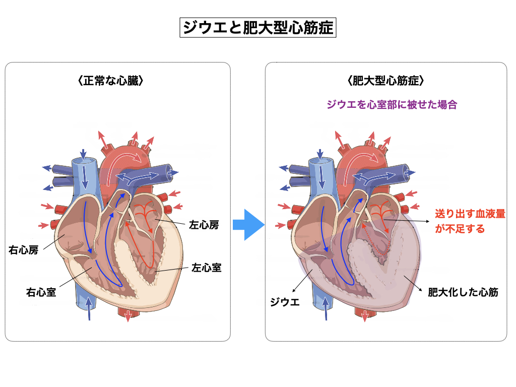 ※ 肥大型心筋症とは高血圧や弁膜症などの心肥大を引き起こす明かな要因が無いにも関わらず、左室ないしは右室の心筋が異常な肥大を起こす疾患である。心筋が厚くなる分、心室の空間容積が減って、大動脈を介して全身に送り出される血液量に不足が生じて来る。この病気はよく家族単位で発症する理由から、医学では遺伝病と捉えているが、家族単位で同じ病気を発生するならば、家族を狙った魔界因縁による天罰病である事は常識的に明らか、世間を良く知らない科学者や医者などのインテリ連中は視野の狭い盲目病(専門馬鹿病)に陥ってアンポンタンな治療をしてしまう。HCMやDCMなどの心筋系の疾患は魔界第2派閥の十八番(おはこ)であって、大宇宙人類の何処の惑星でも同じ病気が存在する。「ジウエ」と呼ばれる魔界の包み型の電磁被膜が武器であり、ジウエはソックスの様に心臓の上から被せる場合と、心室部の下から半分ほど被せる場合がある。この武器もレントゲンで微かに見えるので、病状の進行を止める為には早急に取り外してやる必要がある。ジウエは心筋のミオシン蛋白に作用して筋原繊維そのものを肥大化させて行く。