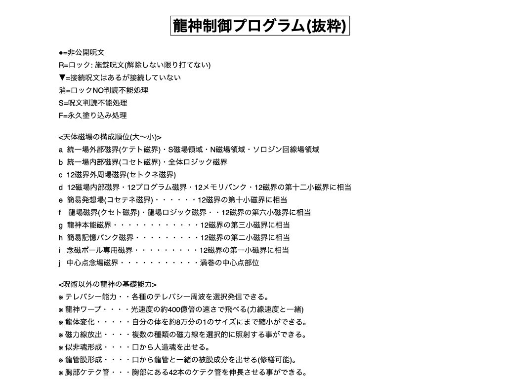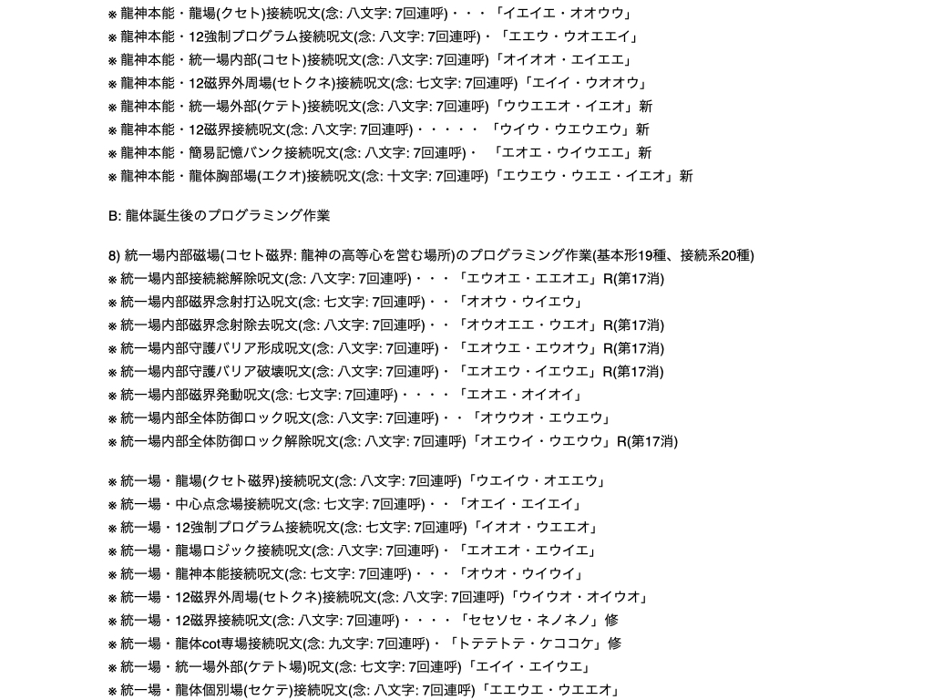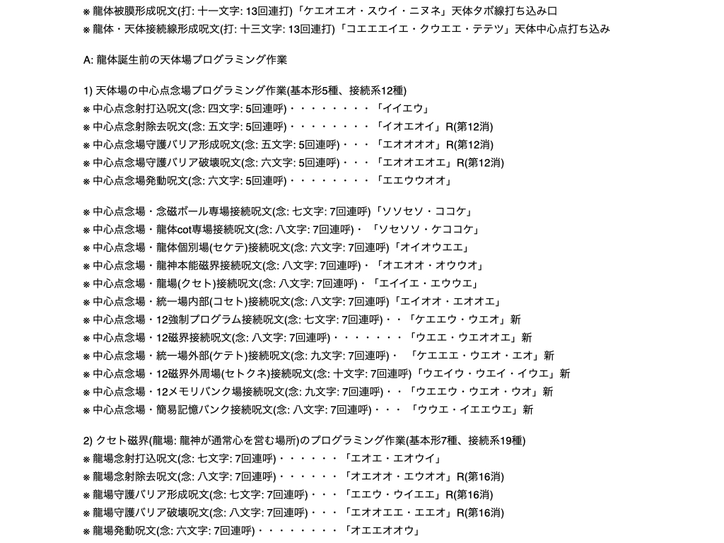 下記は以前にも掲載した事があるが、王国秘伝の「龍神プログラム呪文」の一部である。過去に私自身が実際に打ち込んで龍神を作ったものである。大変長い(A4用紙で約30枚)ものなので、全部は掲載できないが、こういうスピリチュアルな世界が実際にある事を現代の地球人は知るべきであると思う。一見、非科学的に思えるかも知れないが、我々から言わせて貰えば、地球科学の方がずっと非科学的である。目には見えないが、この宇宙には創造主も神々も龍神も霊体も霊魂体も悪魔も、実際に住んでおり「実在物」なのである。西洋科学もおかしいが、西洋スピリチュアルも狂っている。オリオンに洗脳された唯物科学、今の人類の前途には地獄の洞穴が口を開けて待っているだけの話、日本国民も一緒に呑み込まれるだろう事は、もはや疑い様も無いと言える。我々は「エクソダス」が目的では無い。脱出は「手段」に過ぎなく、目的は「開拓」である。未来を開拓する為に我々は地球から出て行くのである。