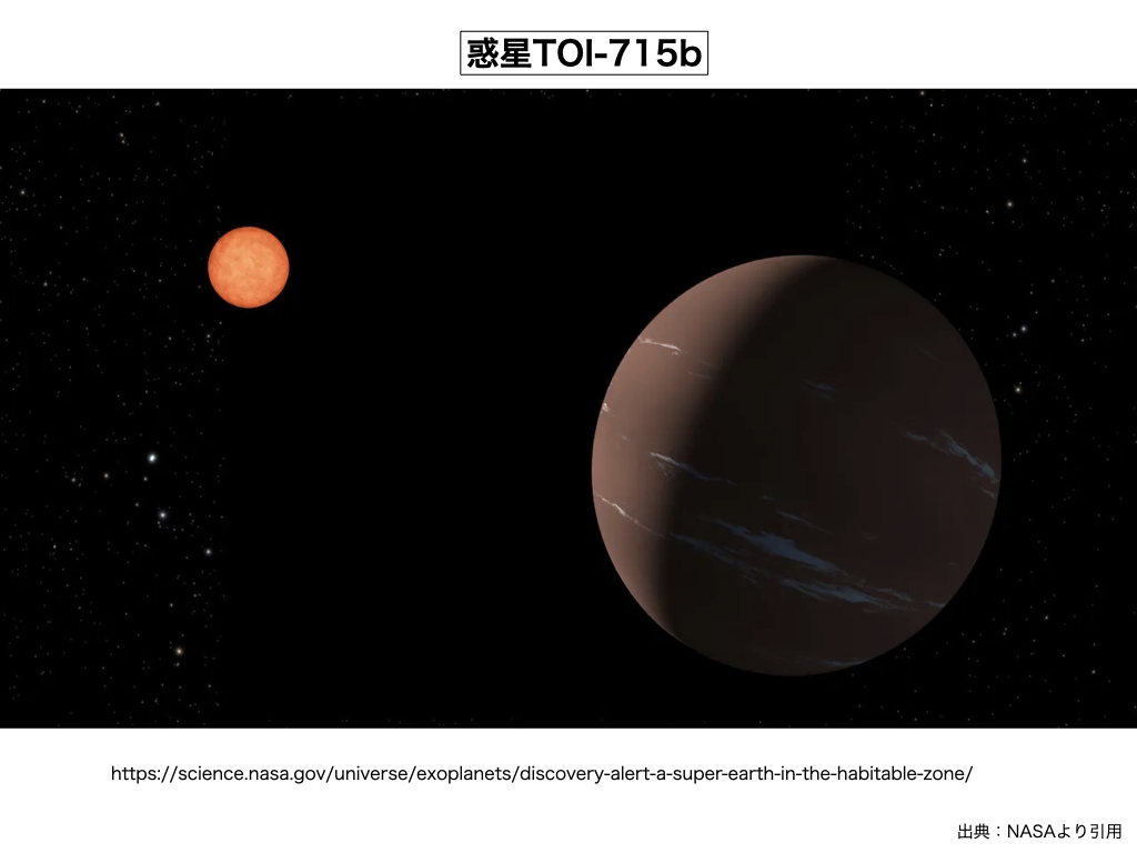 昨年(2023年)、NASAの宇宙望遠鏡(TESS)の観測データを研究しているバーミンガム大学の研究チームが飛魚座の方向(138光年)にある恒星「TOI-715」の内軌道(ハビタブルゾーン: 水が液体でいられる軌道環境)に「惑星」を発見し、これを「TOI-715b」と命名しました。地球の約1.5倍サイズの惑星ですが、表面温度は約-40℃前後と見積もられており、生物の生息が期待されると言う発表でした。地球科学でも系外惑星の発見はこれで5000個を上回っており、昔の定説は既に覆されて、現在は恒星系には必ず複数の惑星が存在する事実が、地球人にも段々と分かって来た様子です。時代遅れの光学望遠鏡しか持っていない地球科学だから仕方がない話ですが、西洋アンポンタン科学には付き合ってはおられません。ちなみに、この恒星には8個の惑星が存在していて、今回発見された惑星(TOI-715b)は第四惑星であり、地球の太陽系で言う所の火星に相当し、惑星の表層面には水は存在しません。「水の惑星」はこの星よりも内軌道にある第三惑星の方であって、こちらには「海」が在りますが、残念ながら有機物は存在するものの「生物(細胞体)」は発生していない様です。