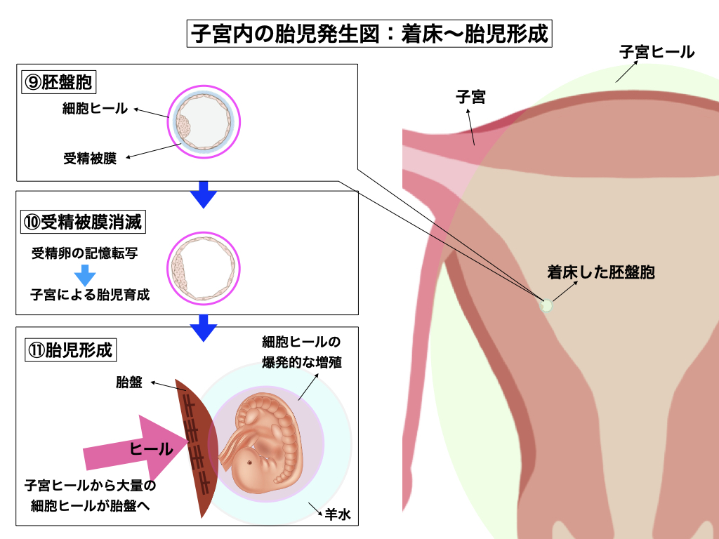 卵子と精子の合体は細胞の遺伝形質の初期化が目的でした。それに対して子宮内で発生して胎児まで育つと、今度は母親自身の遺伝形質(生物本能)を胎児が身に付けてしまいます。それを断ち切る為に命の館から胎児を追い出して、完全に胎児の命を射止めてから出産させています。一度死んで生まれ変われば、全てが初期化されるからです。従って、哺乳類の子供には生物本能が無い故に、卵から孵化した次の瞬間に海へ向かって走り出すと言う亀の子の様な真似は出来ない相談となります。子育てに何倍もの時間を費やす労力が必要となりますが、母体が有する生物本能を断ち切ってやらないと、学習と経験で成長して行く宇宙生命体にはならないからなのです。さて、今回は生物進化に関係する「ヒール遺伝子」の説明を省いていますが、次回のブログではヒールを中心に説明して行きたいと思います。ちなみに、子供時代の記憶の話ですが「胎内記憶」と言う摩訶不思議な現象が存在します。眼も開けていない羊水内の胎児の段階なのに、いや天体の位相や心動帯ともまだ接合していない誕生前の段階なのに、なぜ、子供は胎内に居た明晰な記憶映像を覚えているのでしょうか。そんな話を次回のブログでは説明したいと思います。