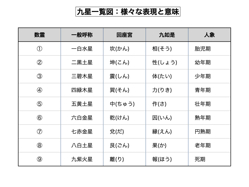 B 九星の象意作用(流年象意)