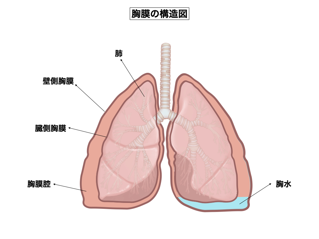 ※ 胸膜疾患・・・肋骨に包まれて保護されている特別な空間を「胸腔」と称しており、そこには命の維持と直結する大事な臓器(心肺)が設置されている。肋骨の内腔を裏張りして、更に肺の表面を包み込む膜状組織は一枚の皮膜であって「胸膜(肋膜)」と呼ばれているが、内部は二重構造を呈しており、肋骨側の皮膜組織を「壁側(へきそく)胸膜」、肺側の皮膜組織を「臓側(ぞうそく)胸膜」、そして両者の中間部は「胸膜腔」と呼ばれている。肺組織は呼吸に乗じて病原体も侵入して来るが、その分免疫軍の守備が発達している場所柄でもある理由から、肺に侵入した細菌やウイルスやウイロイドは中心部を避けて、ガードが比較的薄い皮膜組織へ定着して増殖する傾向が強い。その昔、結核菌が国民病であった時代、胸膜(肋膜)は結核菌の世代菌が潜むコロニーの場所柄だった。そのせいのか、一般的に「肋膜」と言えば、イコール「肺結核」を意味していた事から、悪いイメージを払拭する為にも、最近は敢えて胸膜と称する様になった。いずれにしても皮膜組織は病原体の温床地帯、医師に取ってもまた医療団に取っても厄介な場所柄である。
