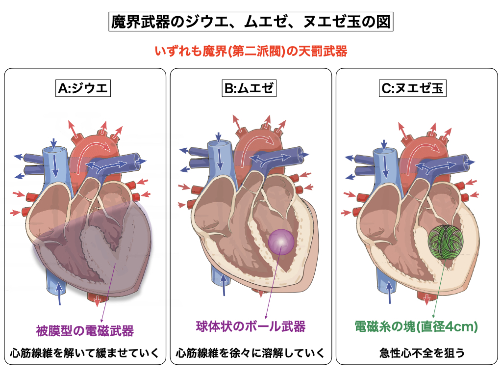 ちなみに、アストラル武器はいずれも魔界(第二派閥)の天罰武器であり、Aの武器(ジウエ)は被膜型の電磁武器であって、心臓を包み込んで、心筋繊維を解いて緩(ゆる)ませて行く武器であり、良く家族単位で仕掛けられるのが特徴である。またBの武器(ムエゼ)は主に心臓の心室を狙った物(球体状のボール)で、心筋繊維を徐々に溶解させて行く武器である。Cの武器(ヌエゼ玉)は心臓の左心室に挿入する電磁糸の塊り(直径4cm)であり急性心不全を狙った武器である。ジウエは肥大型心筋症を、またムエゼは拡張型心筋症を引き起こし、またヌエゼ玉に関しては仕掛ける箇所に応じて、拡張型心筋症や拘束型心筋症を引き起こす。また即死を狙う武器には「クイゴ毒(ウンバチイソギンチャク)」が伝統的に用いられて来たが、最近は「トリカブト毒」や「ボツリヌス毒」も用いられる様になった。今回の調査で新発見したのが「ポプラ・ウイロイド」だった。ポプラはイタリアやフランスやドイツやロシアや中近東も含めてどこにでもあるが、ポプラの綿毛弊害(アレルギー疾患)は有名であるが、ウイロイドによる心臓弊害は初めて知った。調査ついでにポプラ並木が存在する近隣住民の調査を行なった結果、心臓肥大症の方が驚くほど多かった。