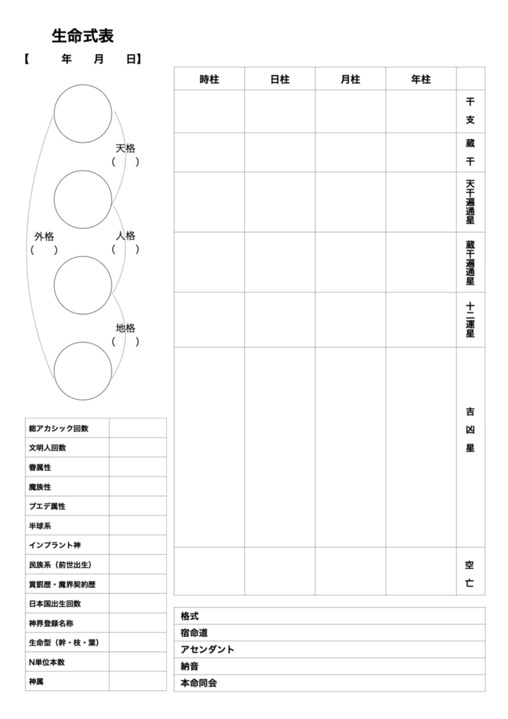 生命式表の項目の一部を解説しておりますので、下記のページも参考にされてみてください。生命式表の右側部分については生命氣学セミナーに参加することで理解が出来るようになります。