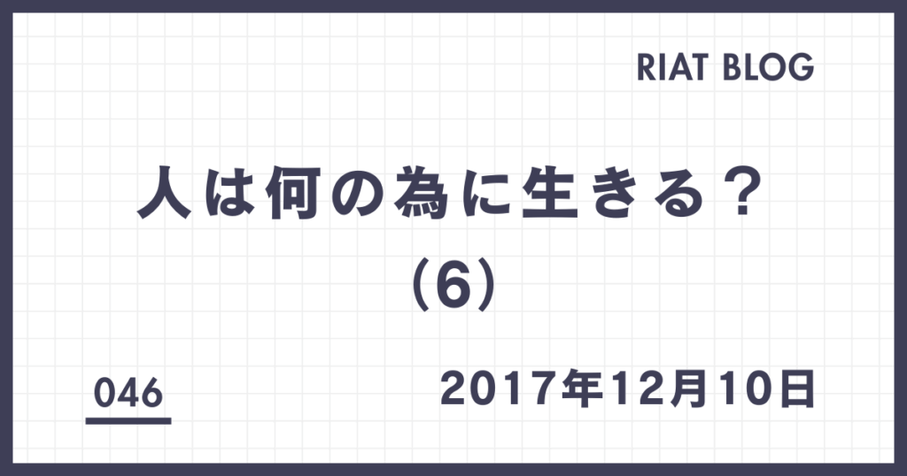 〈生きる事の意味(その1)〉 「生きる事に意味を見出せない」という若者の声が聞こえてくる昨今の社会の現状に対して、我々としては大変嘆かわしくも、また悲しくも感じている次第です。今回は「生きる意味」について、皆様と一緒に改めて考えてみたいと... -